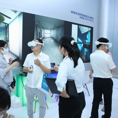 300+㎡的【元宇宙智能展館】,除了有全方位的產(chǎn)品展示區(qū)外,還設(shè)有炫酷未來感的元宇宙體驗區(qū),搭載VR/AR技術(shù),提供多角度、多場景仿真環(huán)境,打破產(chǎn)品與空間交互的邊界,融合視覺、聽覺等多種感官享受,帶來360°身臨其境沉浸式體驗。